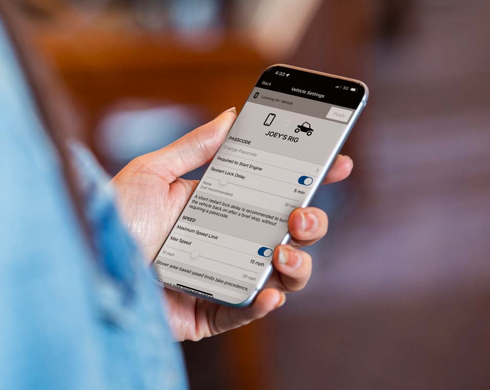 Pour la plus grande tranquillité des parents, ce véhicule est doté de fonctions de sécurité de pointe avec un limiteur de vitesse réglable, de la technologie « Helmet Aware » qui détecte le port du casque, "Ride Control", d'une balise GPS, d'une trousse de sécurité et des feux à LED.